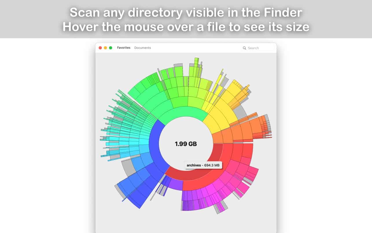 它可以透圓形圖的方式解構用戶的檔案分佈,除了可指定儲存空間位置外,也可支援資料夾,例如將一個含有多個子目錄或檔案的資料夾獨立分析。而圓形圖會按容量來展示分佈,這樣用戶可快速找出佔用空間的檔案所在。《Disk Graph》限時免費中,macOS 用戶快收下吧!
