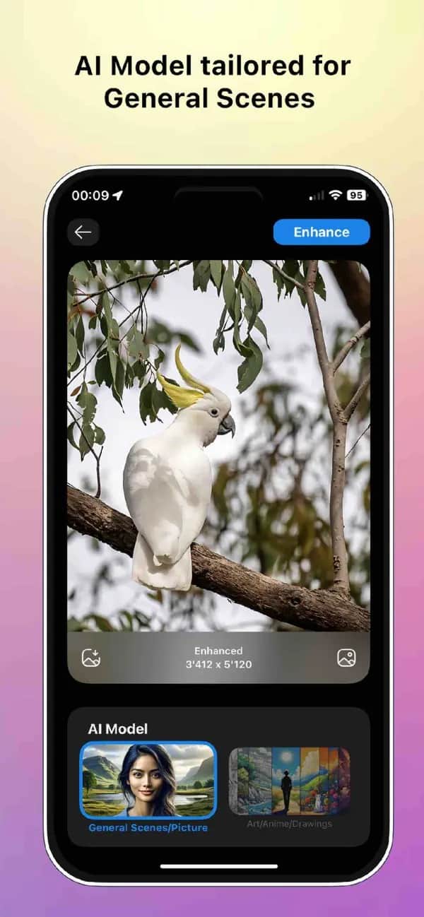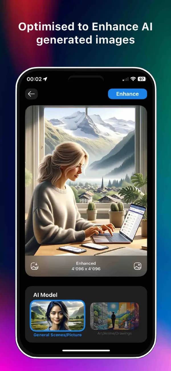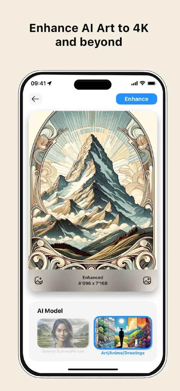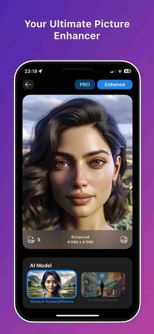 透過《Pictura》,你可以將圖片增強到最多 4 倍的解析度,且無須透過網路即可進行。檔案格式方面,《Pictura》支援 JPG、PNG、WEBP、HEIC 等。