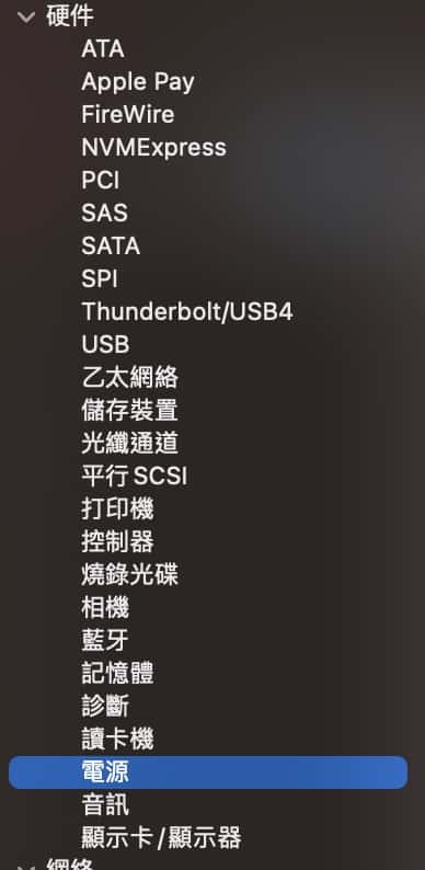 再按硬件中的電源,你就可以知道,你的 MacBook 電池的所有資訊