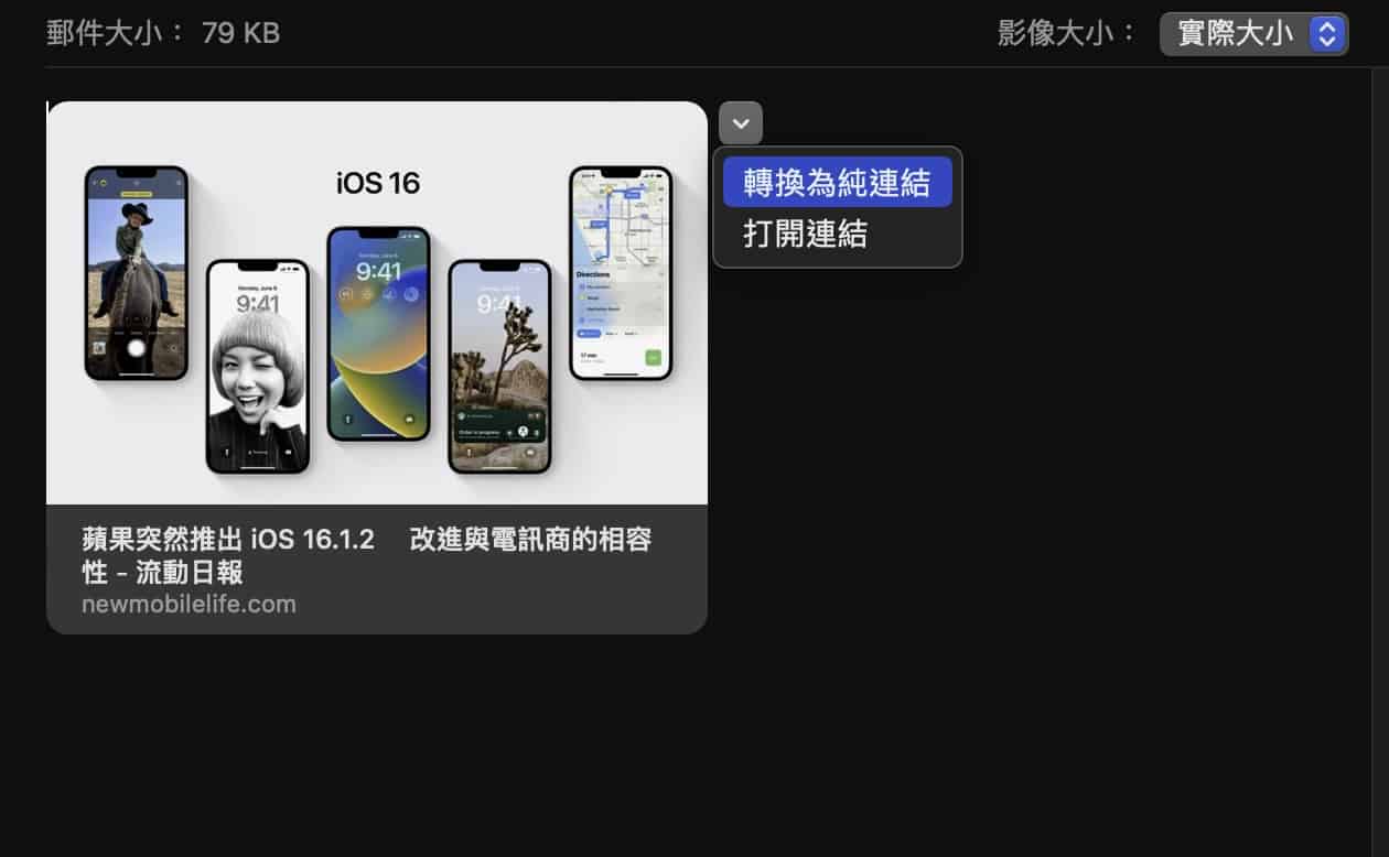 不過,macOS Ventura 用戶透過 Mail App 插入任何 URL 也會自動顯示預覽。想不要顯示預覽,其實只需一個簡單的動作即可。1:插入 URL 看到預覽。
