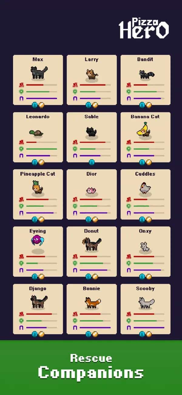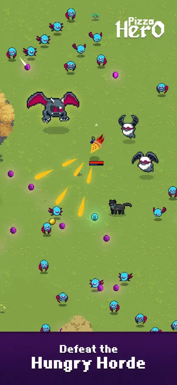 《Pizza Hero》每次遊戲的關卡都是隨機生成的,玩家必須靈活搭配各種不同的配料,才能夠在瞬息萬變的戰場上存活。除了迎戰敵人之外,遊戲也有數十項成就挑戰你的能力,還有 10 隻寵物等著你來營救。